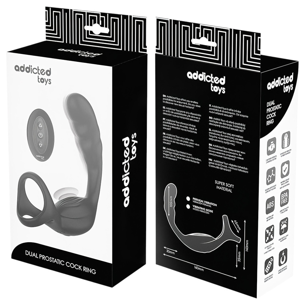 Addicted Toys - análvibrátor pénisz- és heregyűrűvel (fekete)