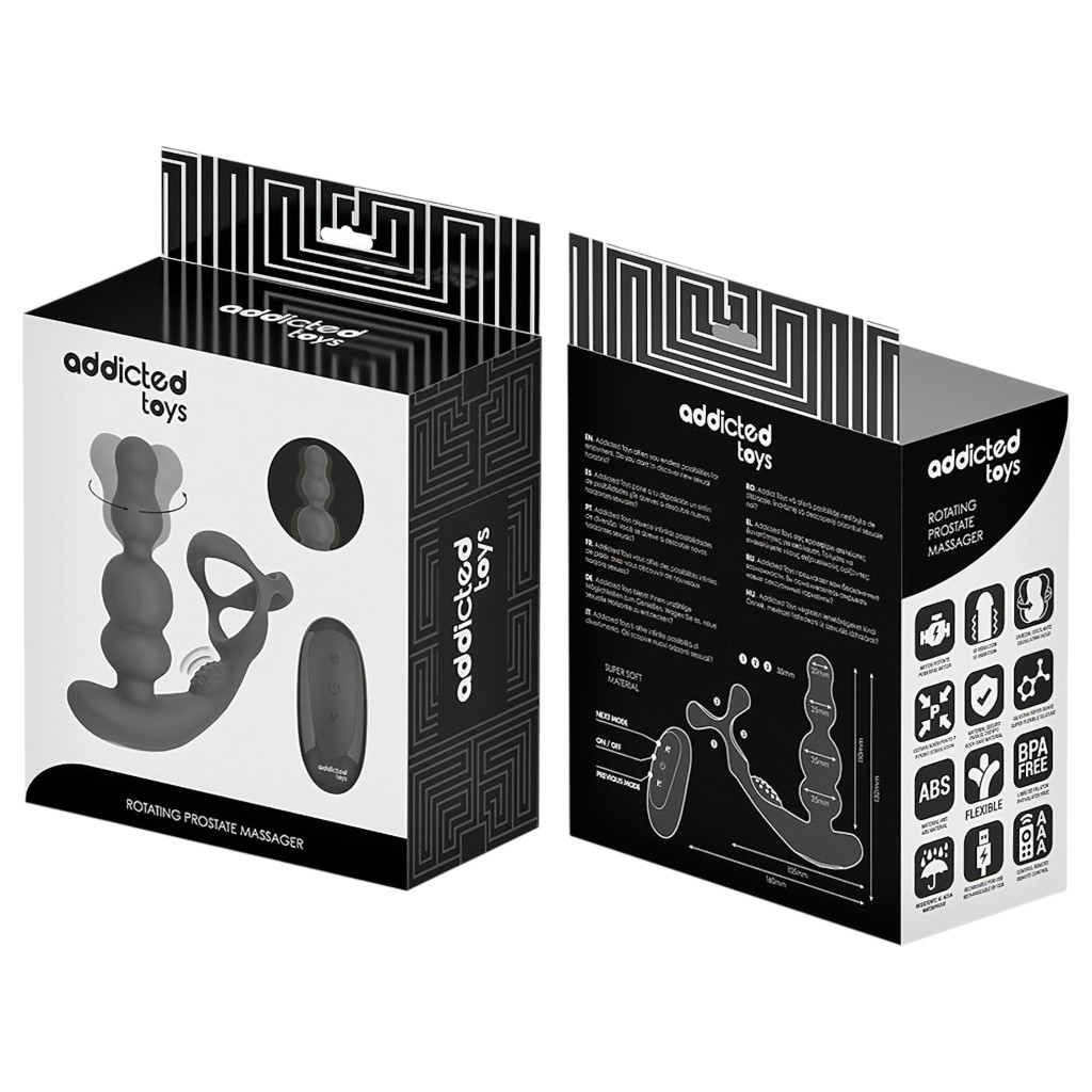 Addicted Toys - forgó fejes análvibrátor péniszgyűrűvel (fekete)