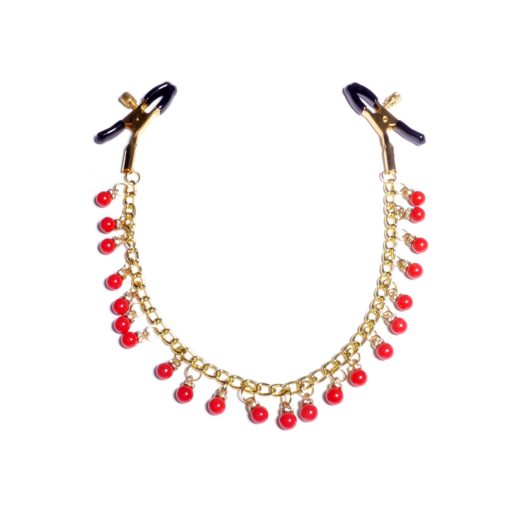 Mellbimbó csipesz piros csengős, arany színű lánccal.