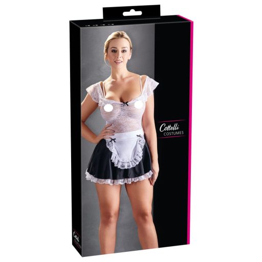 A ruha felső része rugalmas, fehér virágmintás csipke. Pántja gumis, ami vállra ejthető.