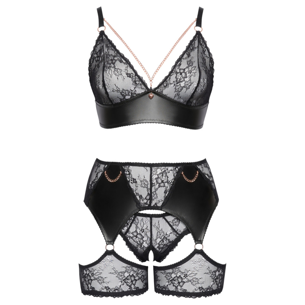 Cottelli Curves - csipkés, bőrbetétes melltartó szett (fekete)