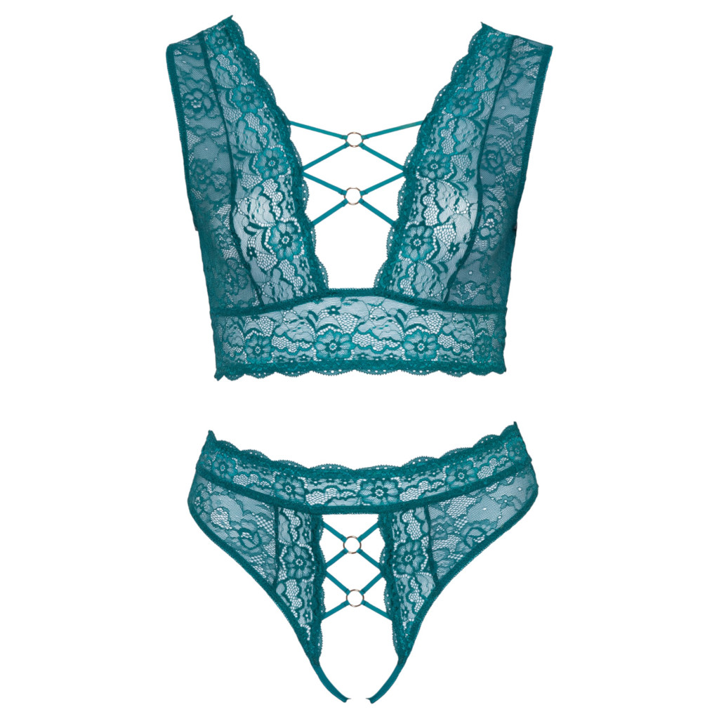 / Cottelli Curves - fűzős csipke fehérnemű szett (kék)