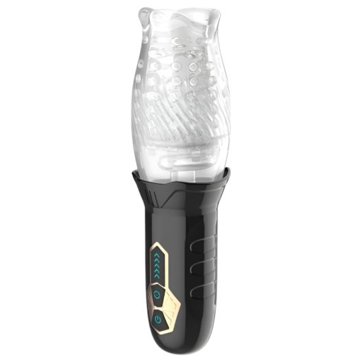 Leopard Bellucci 360 - forgó-rezgő maszturbátor (átlátszó-fekete)
