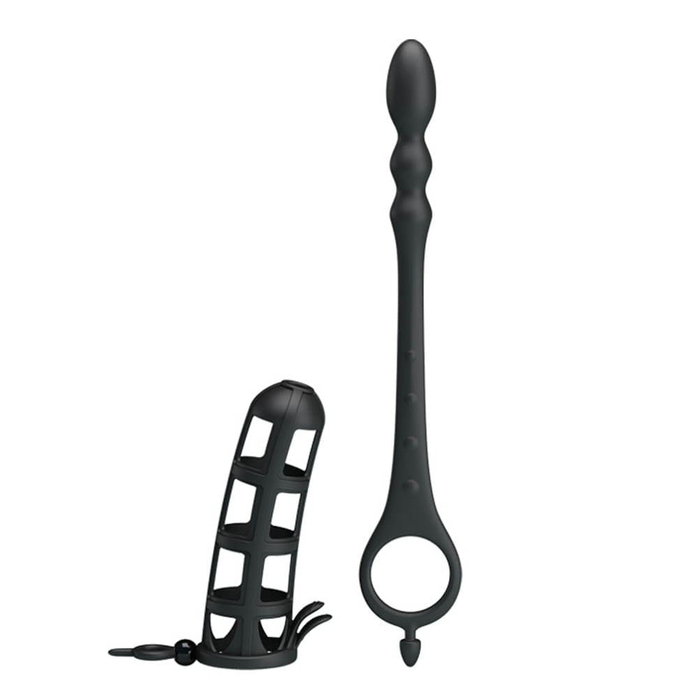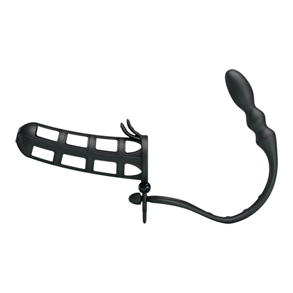 Pretty Love Hercules Penis Sheath - Szilikon vízálló hosszabbító péniszköpeny csiklóizgatóval (Fekete)