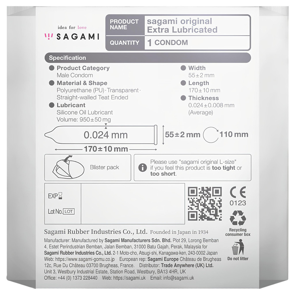 Sagami Original 0,02 - extra síkosított óvszer - 55mm (1db)