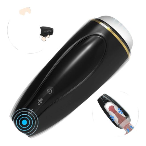 Sex HD Hawk - akkus, rezgő-szívó maszturbátor (fekete-fehér)