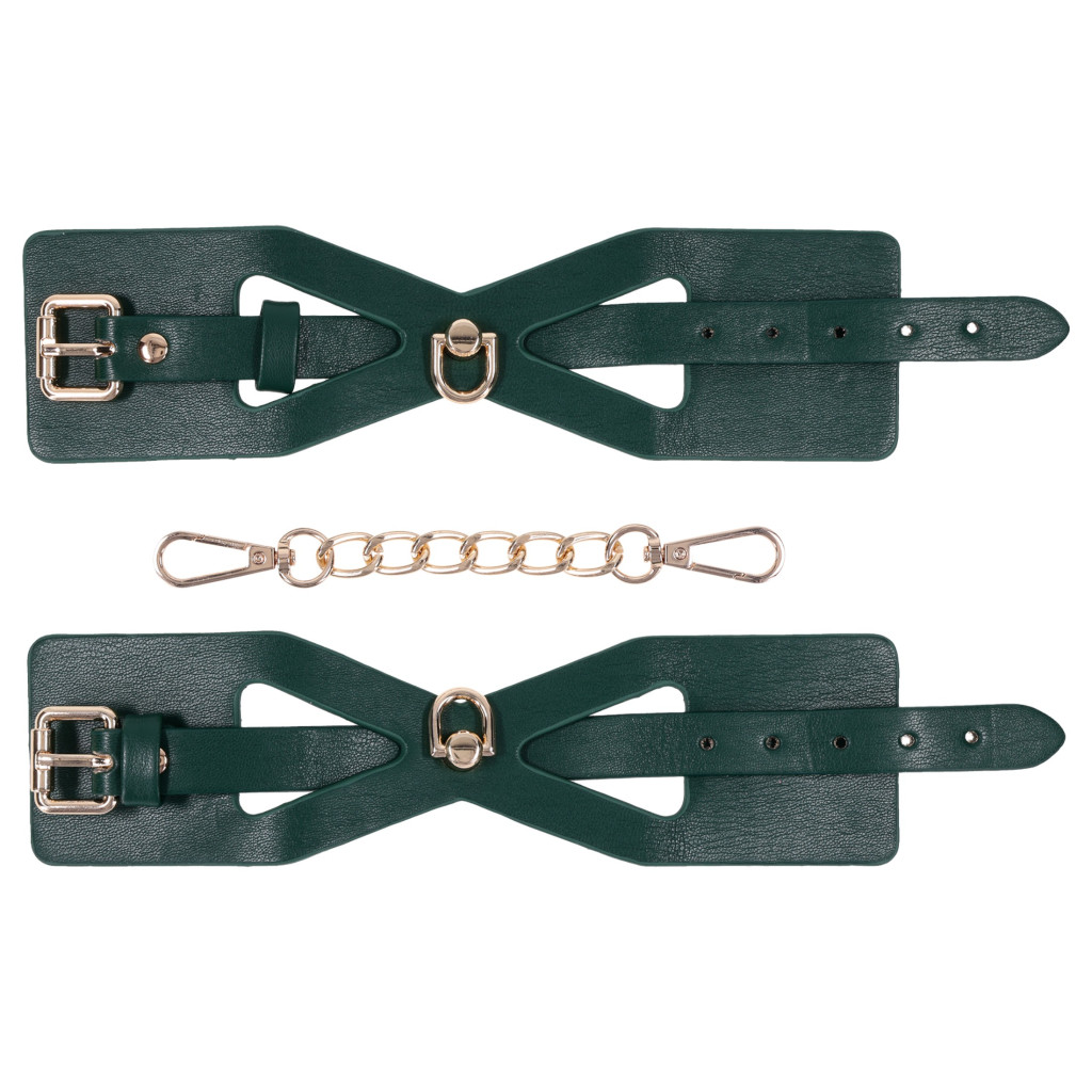 1 pár smaragdzöld csuklóbilincs arany lánccal összekötve