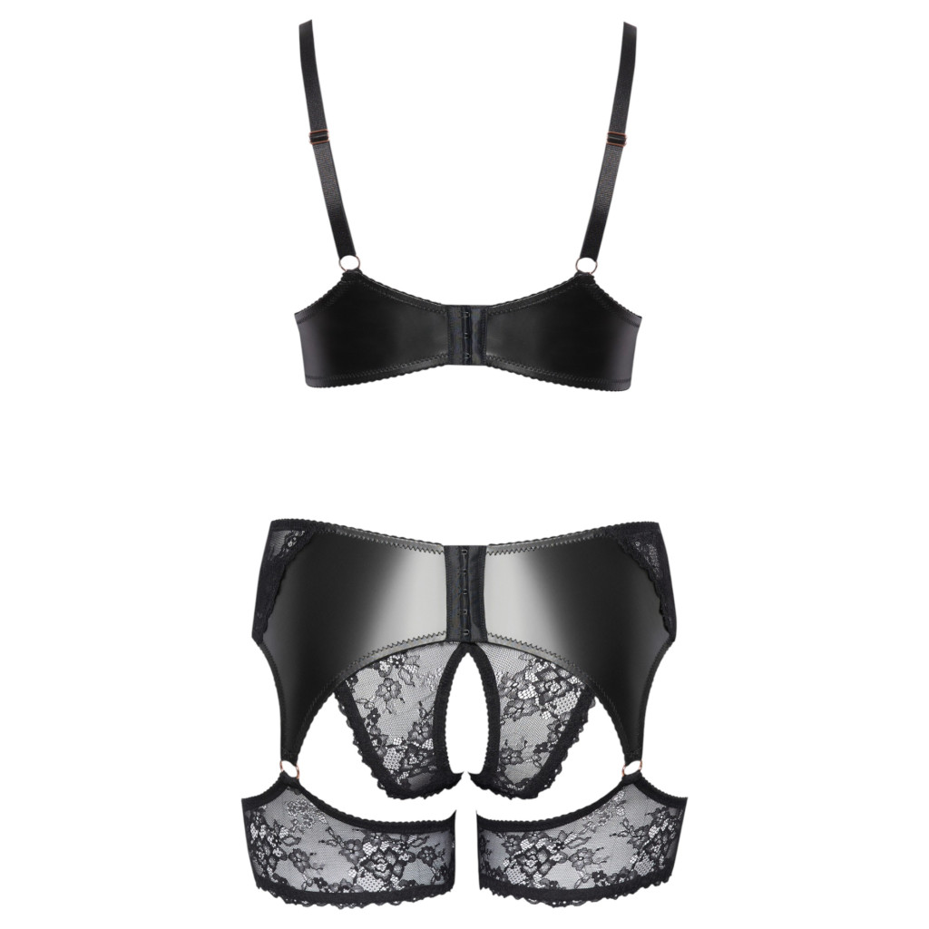 Cottelli Curves - csipkés, bőrbetétes melltartó szett (fekete)