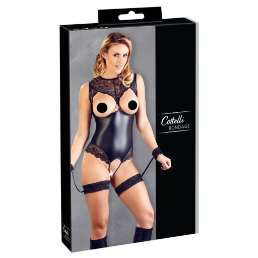 Ujjatlan fazonban, teljesen nyitott mellrésszel és szeméremrésszel.