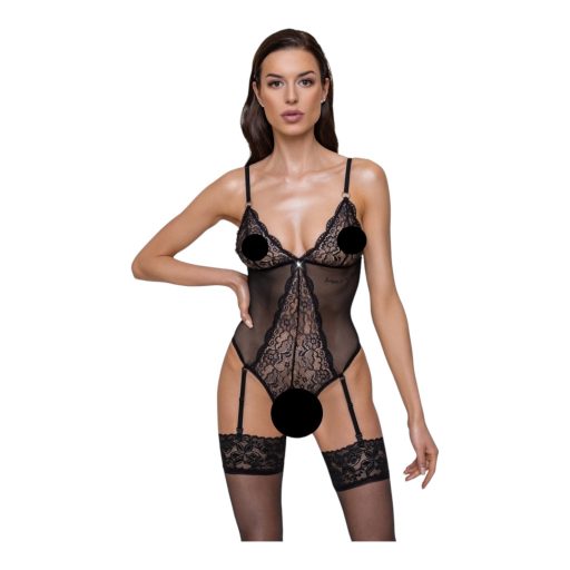 Cottelli - harisnyatartós, csipkés nyitott body (fekete)