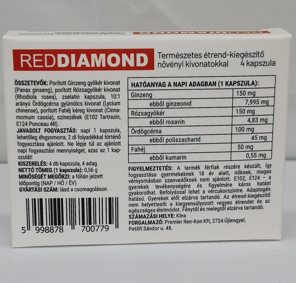 Red Diamond - természetes étrend kiegészítő férfiaknak (4db)