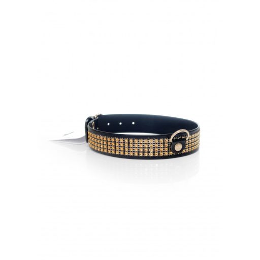Exkluzív gallér arany színű kristályokkal, tartós ökológiai bőrből, puha tapintású, kényelmes viseletet biztosít. A gallér 36 és 42 cm között állítható. Az irányított játék érdekében a galléron lévő O-gyűrűt használva rögzítheti a nyakpántot (nem tartozék). Ez végtelen lehetőségeket teremt, és lehetővé teszi a rabság kreatív és személyes megtapasztalását. Nyakörv szélessége: 3 cm